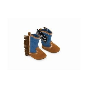Yee-Haw! These adorable boots are perfect for your little one whether going to the rodeo or just to grandmas. These soft-soled denim and suede boots feature sueded fringes and a side Velcro closure for easy wearability. Suitable for boys or girls. Fits 0-6 months.