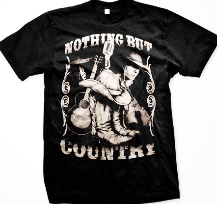 Nothing But Country T-shirt, Cowboy Boots, Hat and Guitar Mens Country Western Shirts, Large, Charcoal