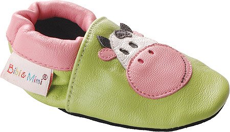 Cow shoes 0-6 months Size: 0-6 months Cow Shoes by Bibi and Mimi Bibi & Mimi Cow Shoes are created with love and handcrafted from the softest natural leather of the highest quality. Soft-soled shoes are recommended by pediatricians around the world for the healthy development of baby feet. Bibi & Mimi shoes create freedom of movement and help feet to flex while offering a protective and comfortable layer. Feature: -Cow Shoes in Green. -Part of the Cow collection. -Leather upper material. -Suede sole material. -Expandable ankle feature insures they are easy to slip on. -Available in Green (Cow Green).