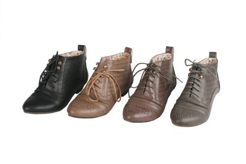 Sweet Beauty Robin-01 Women's Shorties With Laced Round Toe Oxford Upper On Kitty Heels