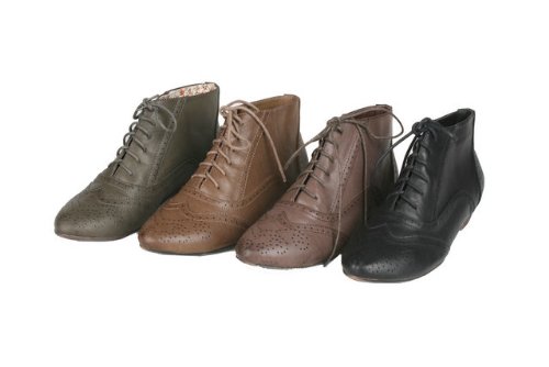 women's shorties with laced round toe oxford upper on kitty heels Refresh Oxford shortiesRefresh Tiny cow boy boots heel