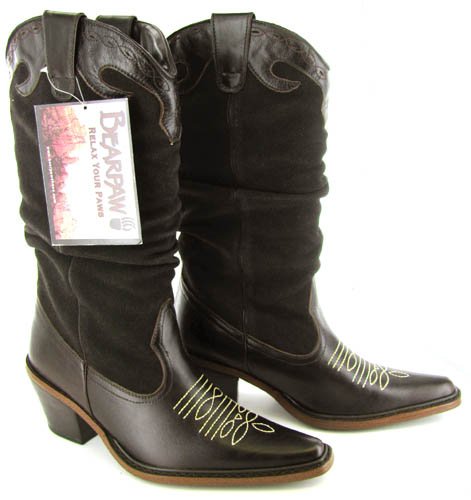 Bearpaw Womens Suede/Leather Cowgirl Boot - Style 636 Dakota (7, Chocolate) Description:These sexy, slouch, Western-Styled boots will bring out your inner cowgirl! To protect your boots & make them last longer, treat boots with a water-proofing spray for leather products before wearing outdoors. The Clausette's Shipping Information: Provide a physical U.S. address for shipping (we ship within the continental U.S., Hawaii, and Alaska). We do not ship to P.O. Boxes, APO, FPO, or internationally. Product will ship from southern California via UPS Ground. Expedited shipping will be via UPS 2nd day air (not recommend for customer's in CA, NV, UT, AZ since UPS Ground is already 1-2 days shipping).